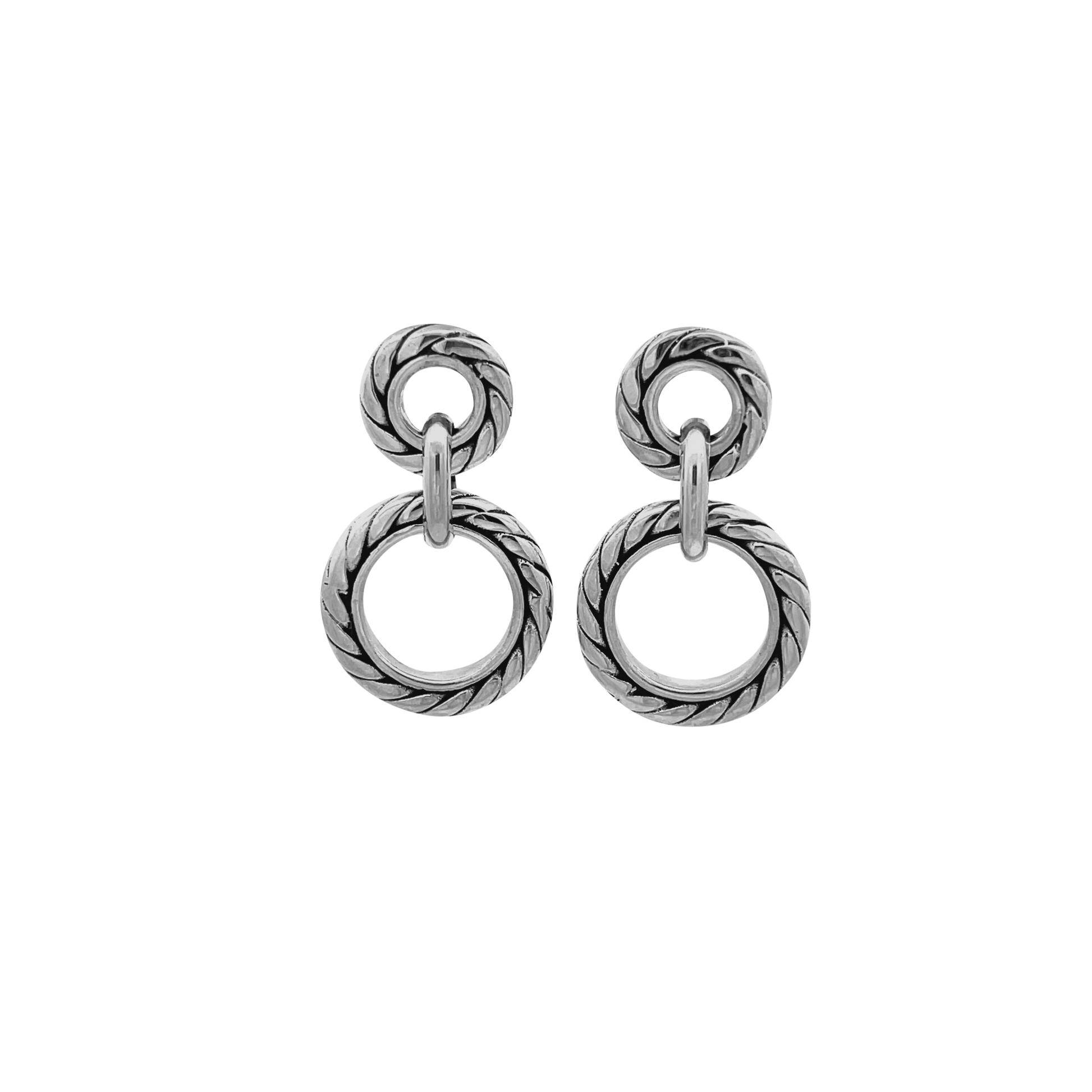 Introducing the Amar earrings with a dainty design and stunning triple charm center. Small link measures 10mm x 10mm, large link measures 15mm x 15mm.