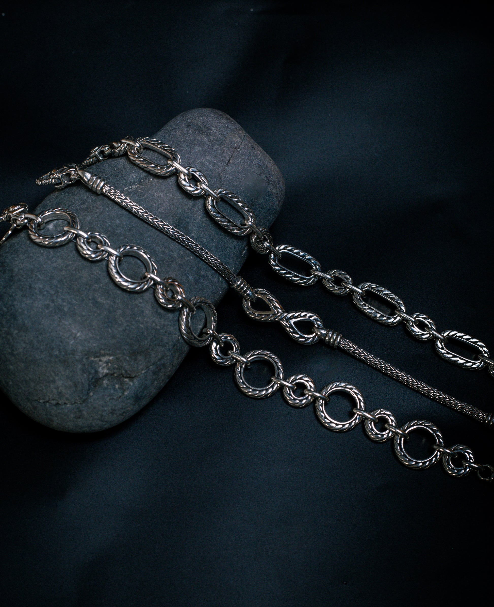 Introducing Amar: a dainty design with a show-stopping triple charm center. Small link measures 10mm x 10mm, large link measures 15mm x 15mm. Bright and fashionable all year long.