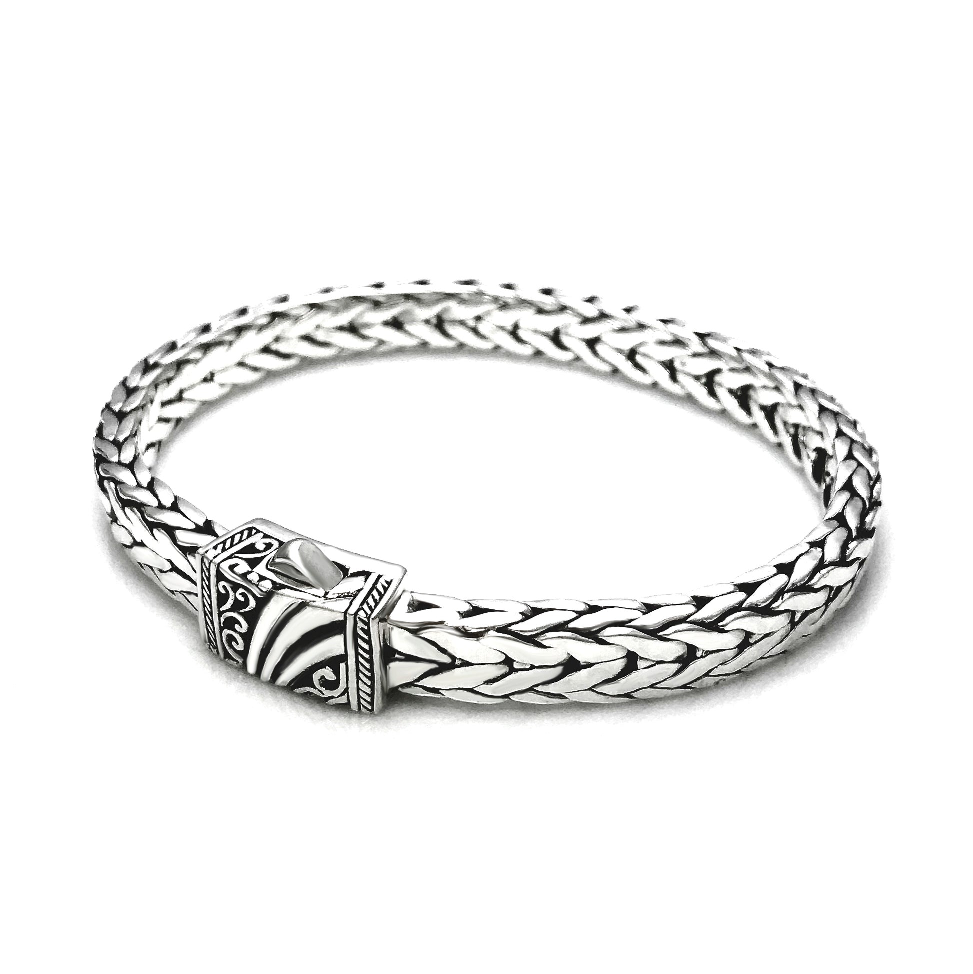 The Ara is another king-inspired bracelet design. Within this bracelet is a tightly-knit braided pattern and an unexpected clasp accented with arches and swirls. The nuanced flair of the clasp brings a fun and confident essence to any outfit it is paired with.