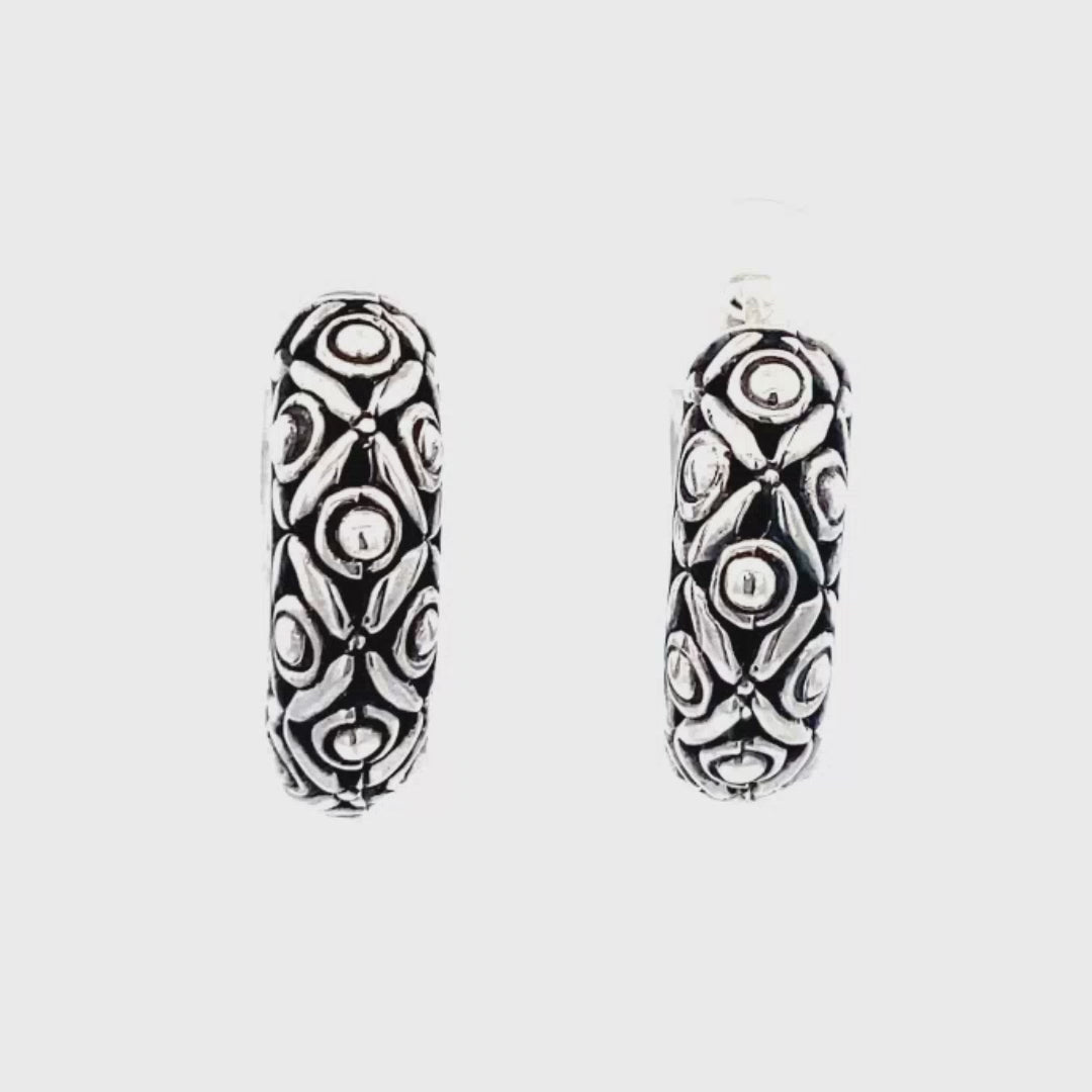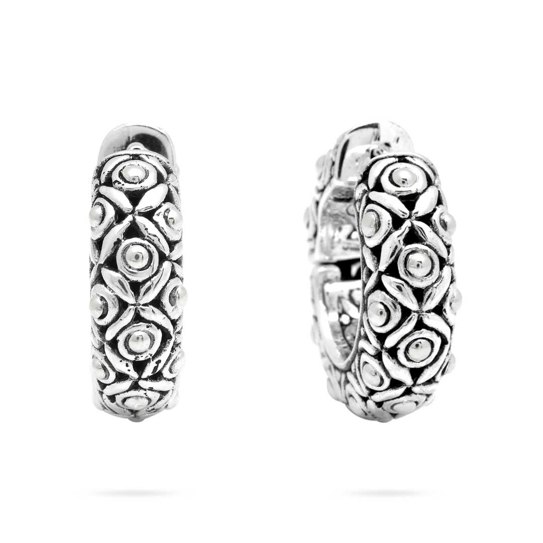 The Ardemis huggies are named after the Greek Goddess bearing the same name. Ardemis is associated with nature, which is featured in the flower-like design of the earrings. The flower and vine design are subtle enough to intrigue those looking for simplicity, but detailed enough to cater to those interested in feminine patterns.