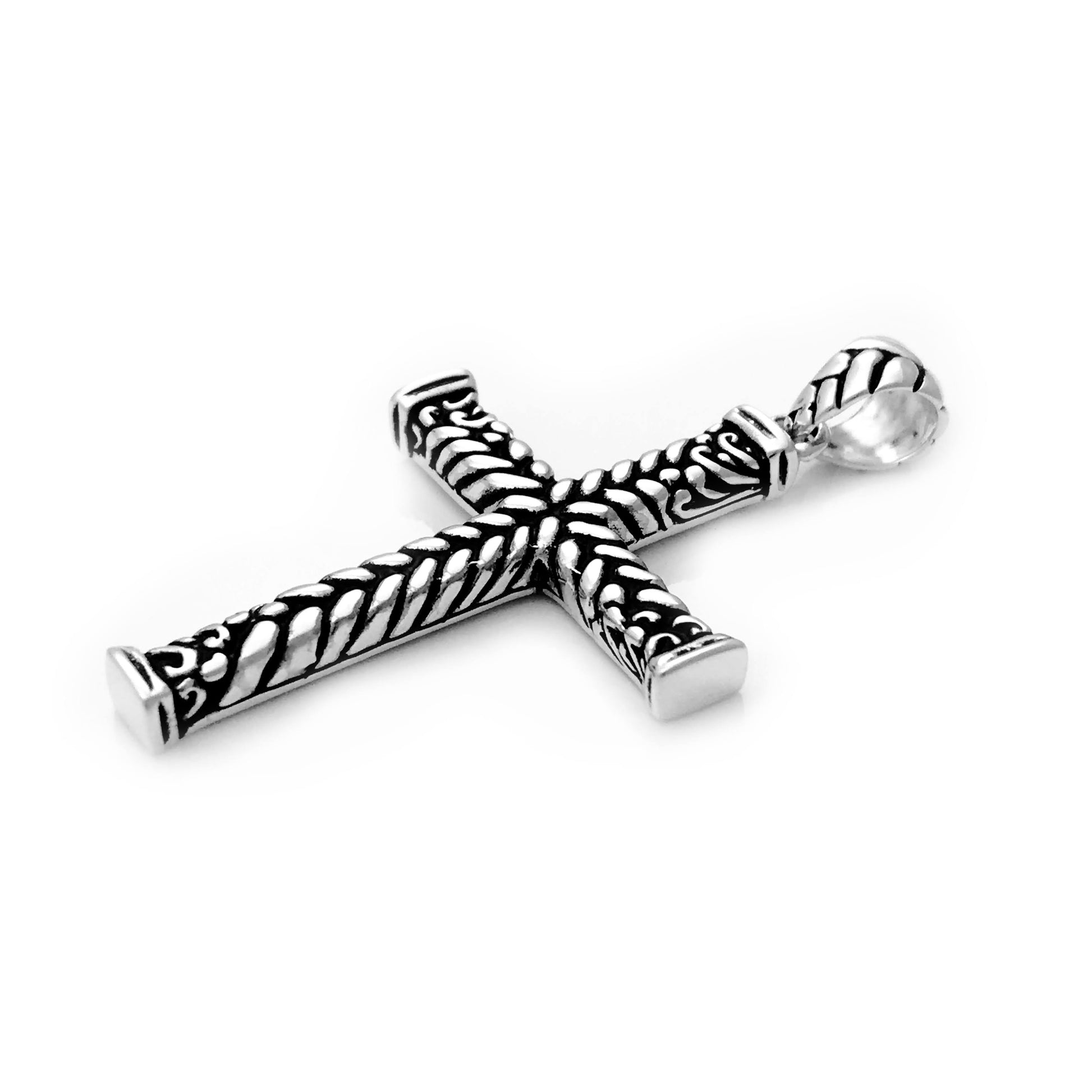 The Atam cross is a bit more 3-dimensional than our other cross variants. The beautiful braided pattern extends past just the surface of the cross, enveloping the sides as well to create a cohesive, rounded weave effect and finished with straight edged end-caps.