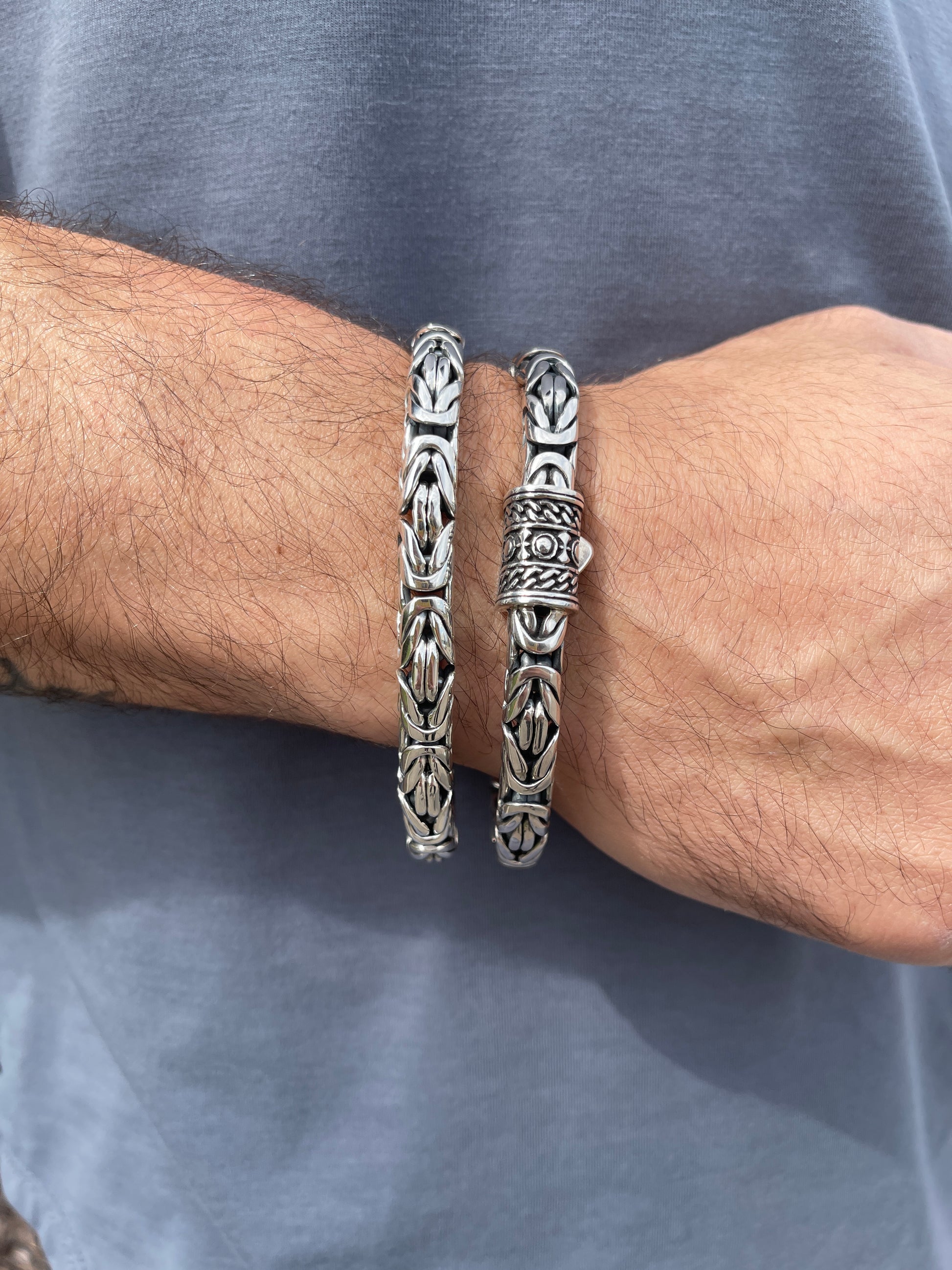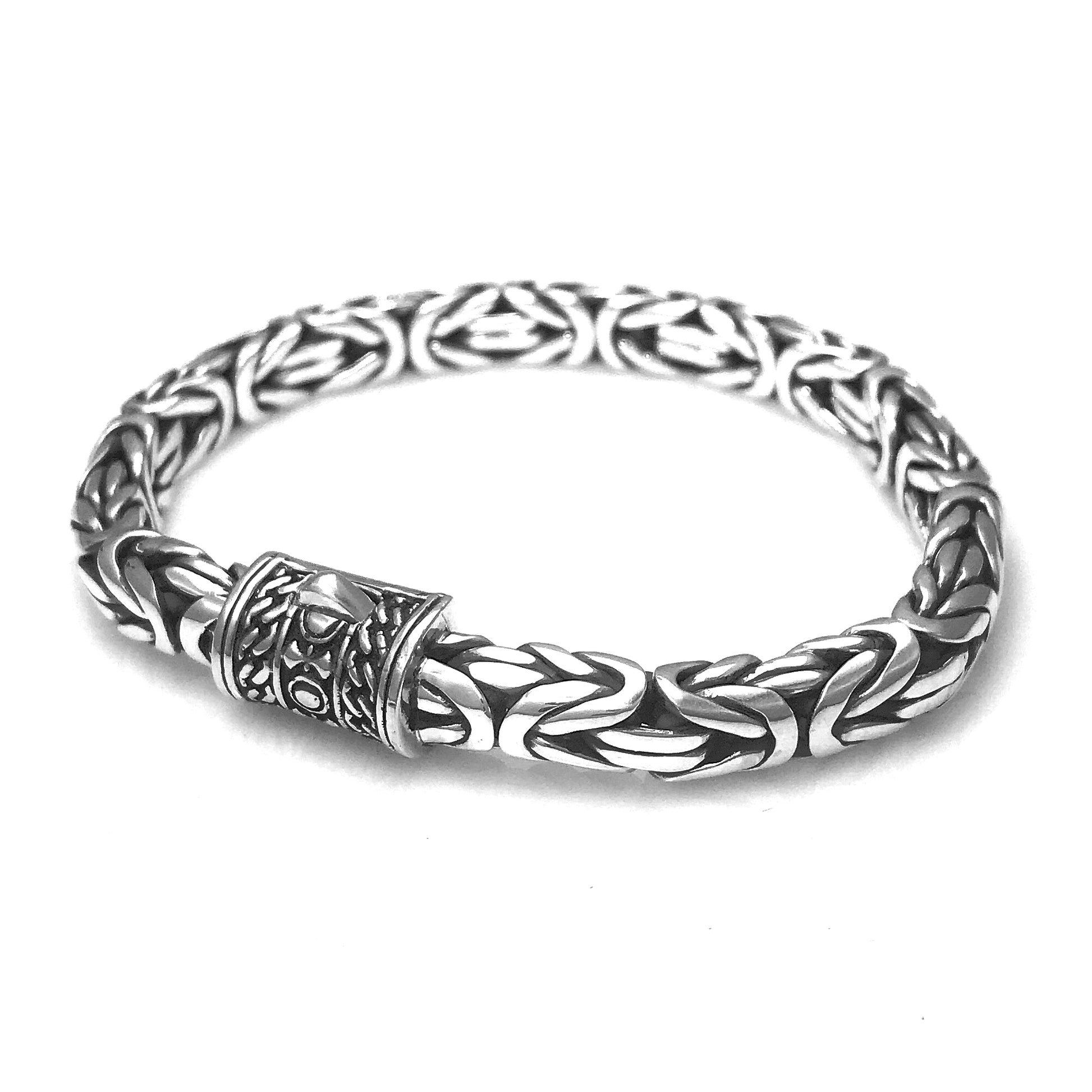 The Daron bracelet is one of Garni’s most distinctive Byzantine patterns. Simultaneously looped and interwoven, this bracelet is gracefully fastened together by a funky tri-designed clasp.
