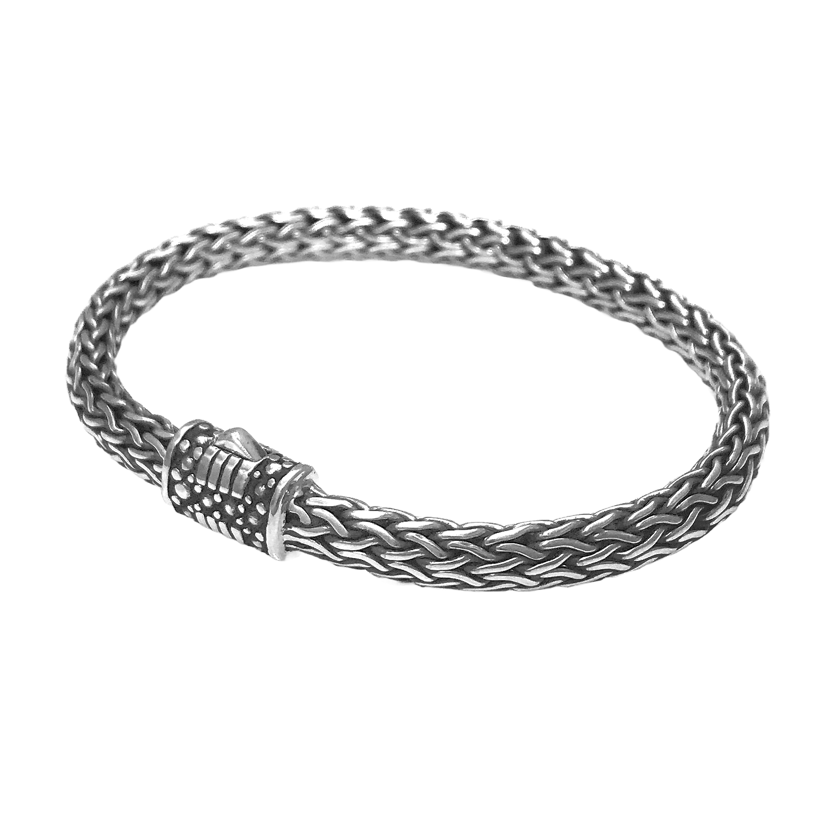 The Lilit bracelet is elegantly delicate, as is the spoken sound of its name. The narrow weave effect offsets the pebble clasp with an attractive allure.