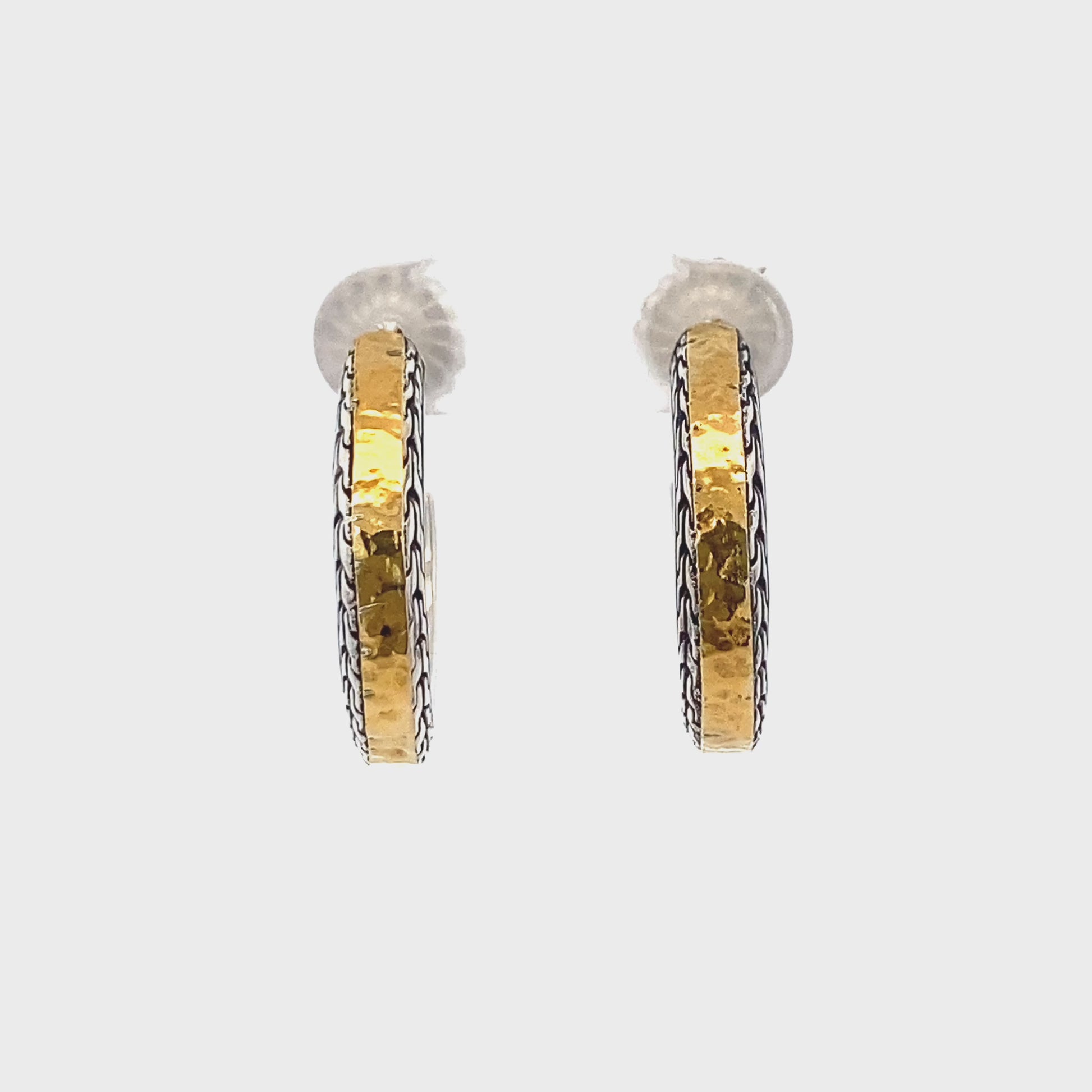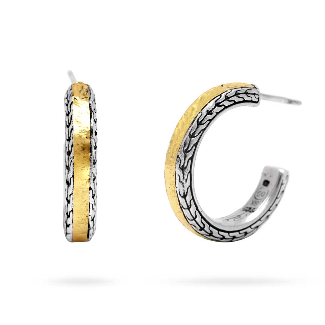 The Lucine hoops are a show stopping and evolved version of our Nairi hoops. The two-tone design is sophisticated yet rebellious, as it dares to be distinct from the other earrings in the Garni collection.