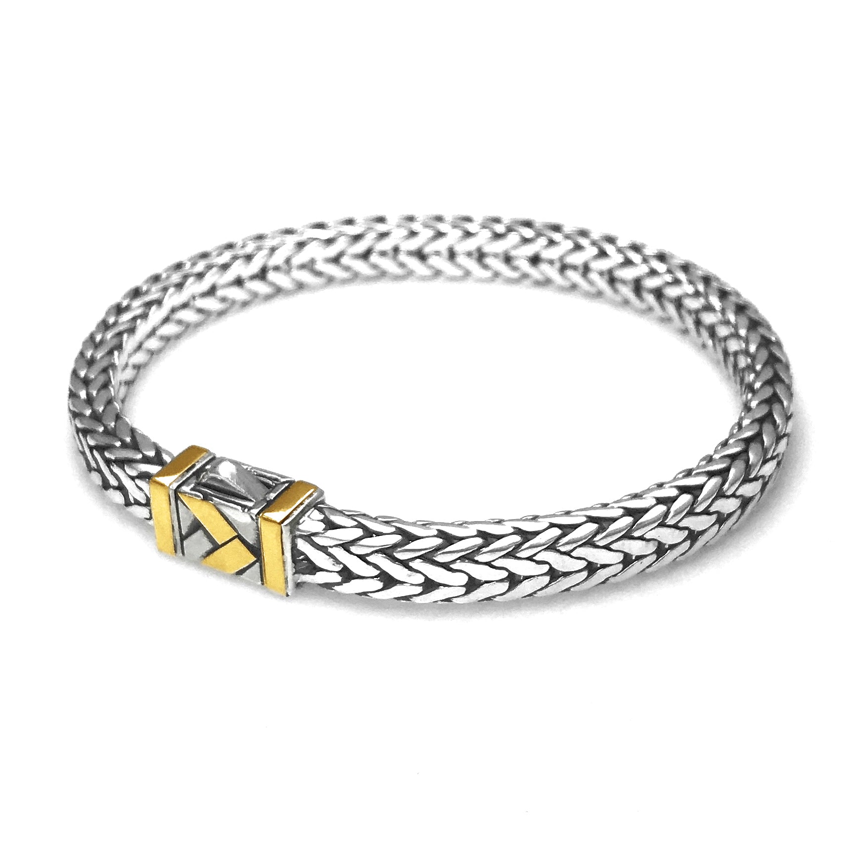 The Nora bracelet symbolizes the light that is within and around us. The unique clasp design with intersecting paths of gold is reflective of the balance of light and dark that is represented in each of our lives.