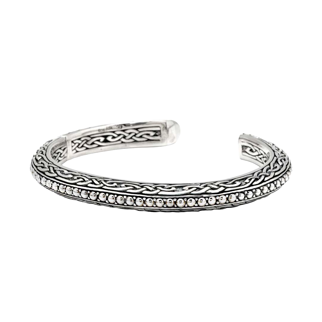 A delicate yet mighty cuff that is designed and crafted as a pure sterling silver version of our Arax cuff. Our Talia is a version for those who have more minimalistic taste. Classy and organized, without trying too hard. The sterling silver and intricate Celtic inspired braided design make for a polished and unforgettable look.