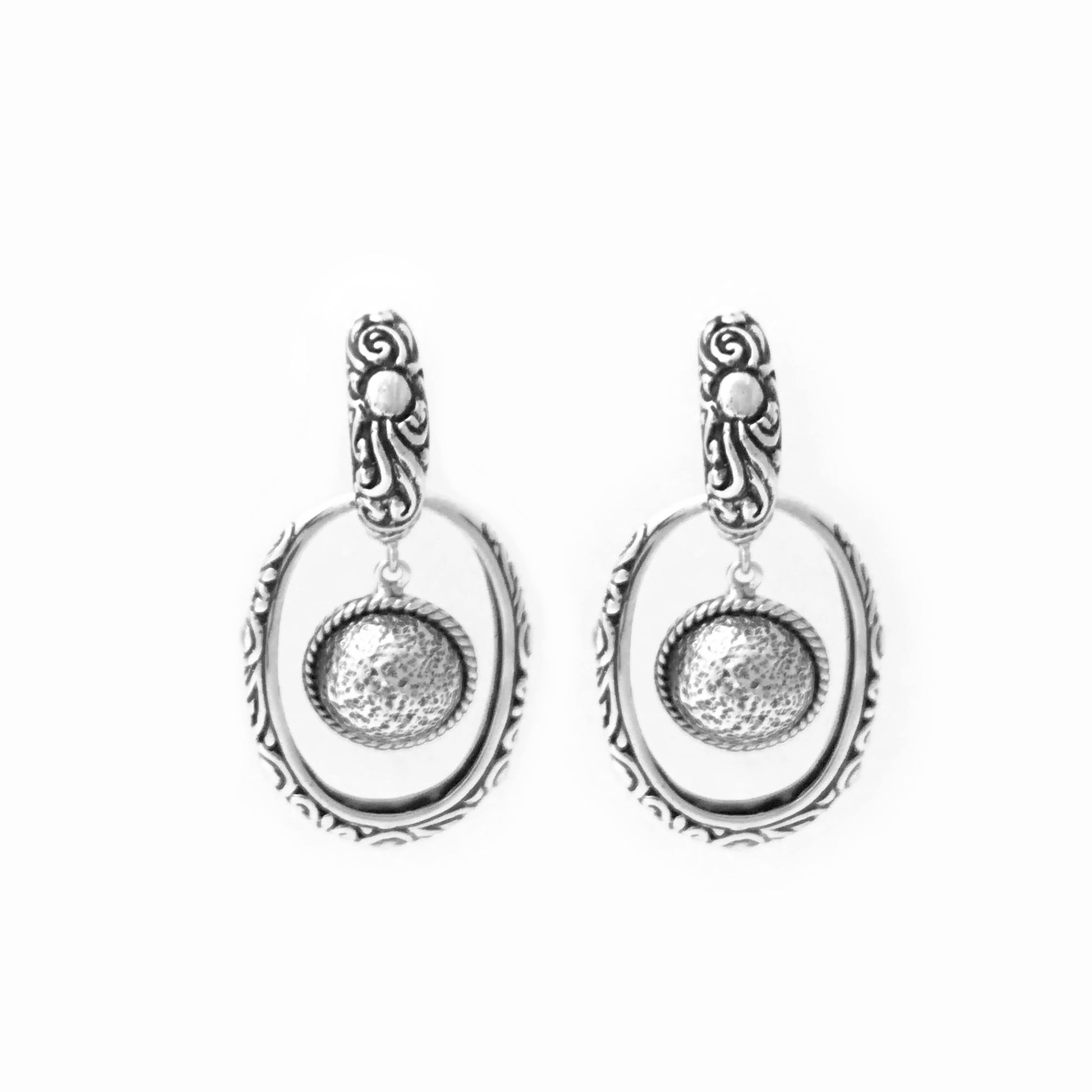 The Vana earrings are an all-sterling-silver variation of the Sara earrings. They feature the same exact detailing of the Sara design, but with a more muted approach for those that prefer a single toned jewelry theme.