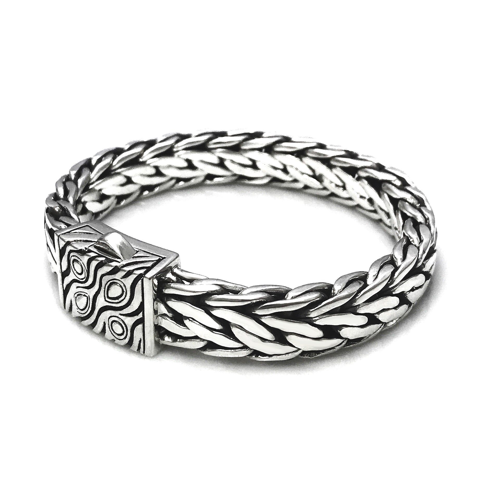 The Vartan bracelet is an audacious design that is the largest in the men’s collection. The thick braided links are reminiscent of tiger strips, meeting at both ends at an avant garde, flowing clasp. The Vartan bracelet is bold and demanding in its presence, beaming with an unmistakable sense of statement.